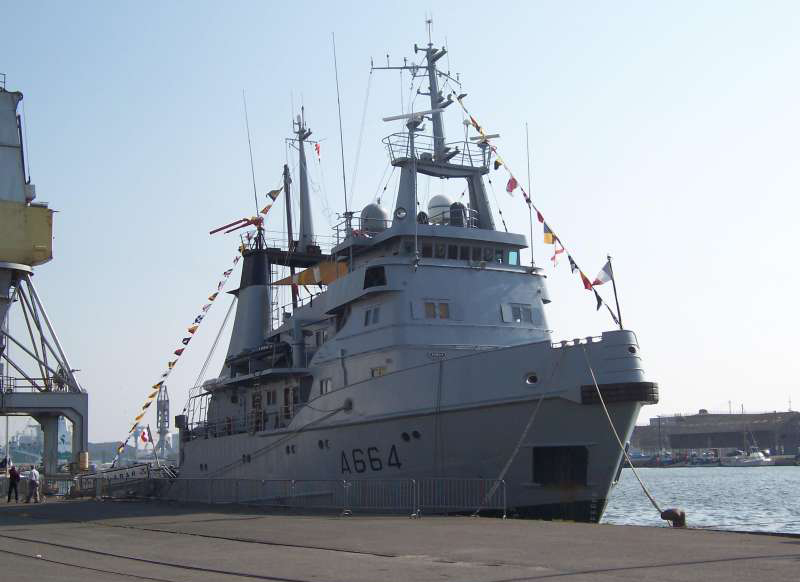 03 February 1976 commissioned in the French Navy, based at Brest. She is one of the three most powerful tugs in service by the French Navy.