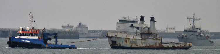 The tug TSM KERMOR departed with the MALABAR from Brest heading for the breakers Garder & De Bezenac Le Havre Photo : Jacques Carney
