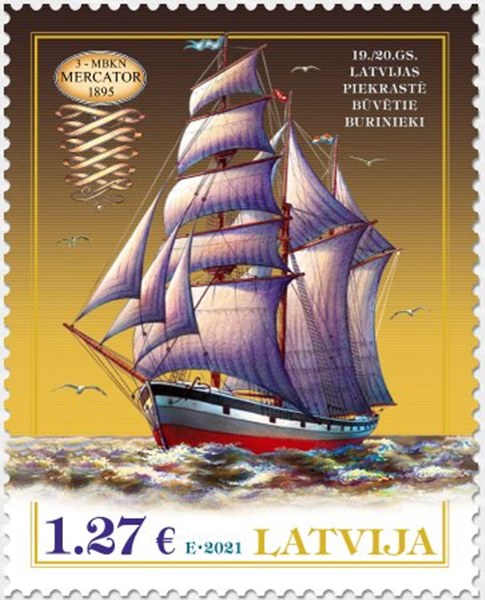 On the 19th of February 2021, Latvijas Pasts is releasing a new stamp in the series Historical Ships of the 19th Century, featuring the barquentine MERCATOR (Merkators), a three-mast sailing ship built in Ainaži in 1895.