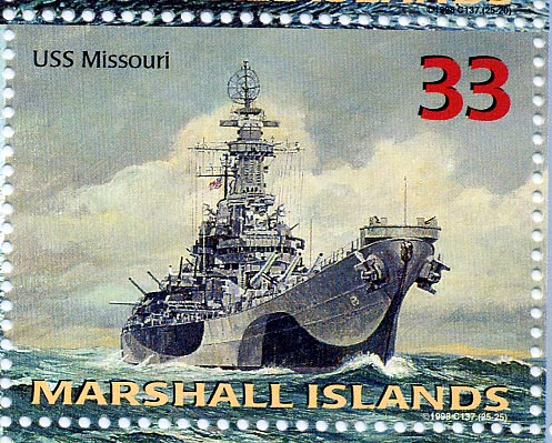 Marshall Islands 1995 75c sg593, scott522, also deck scene of MISSOURI scott 523/4 1997 20c sg913, scott649y. 1997 33c sg1106, scott?