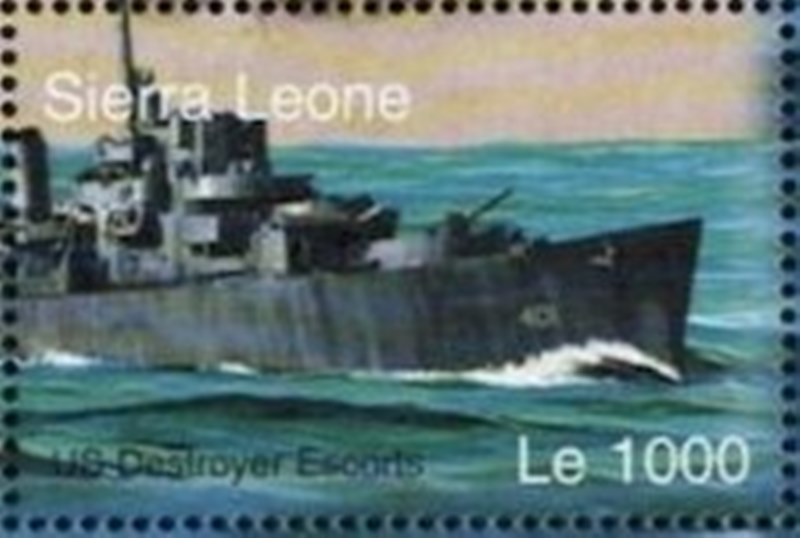 The Canadian frigate LOUISBURG (K401) can not be the ship, she was used by the D-Day landings but her armament did have only one gun on the fore ship, and not as seen on the stamp two guns.
