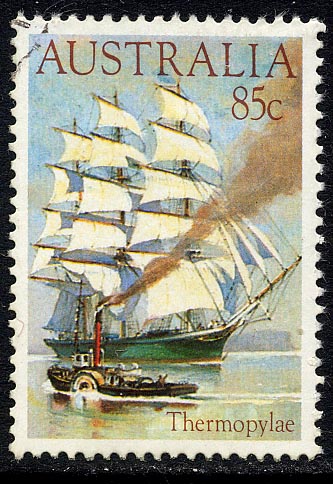 After the tea clippers were forced out of the tea trade, the THERMOPYLAE was used in the wool trade from Australia via Cape Horn to the U.K.