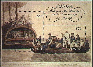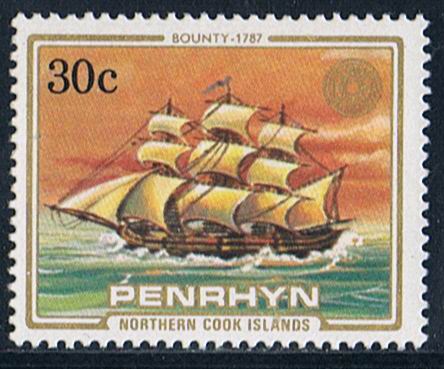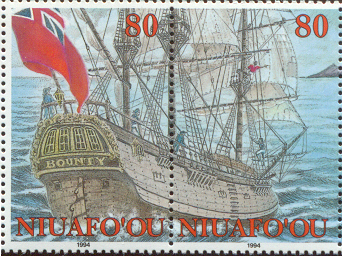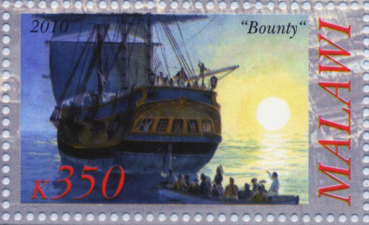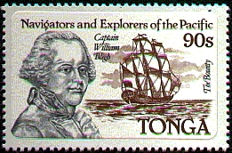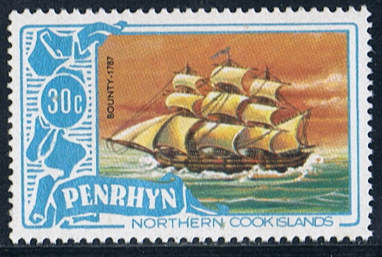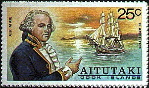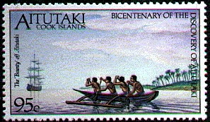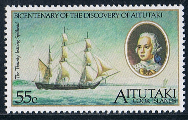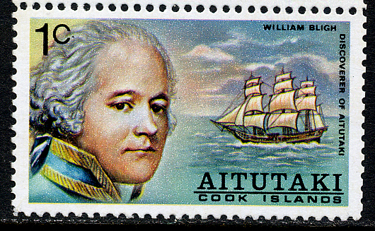 The Aitutaki stamp shows Captain Bligh but the ship depict, carried four yards and is the replica BOUNTY of 1962.)