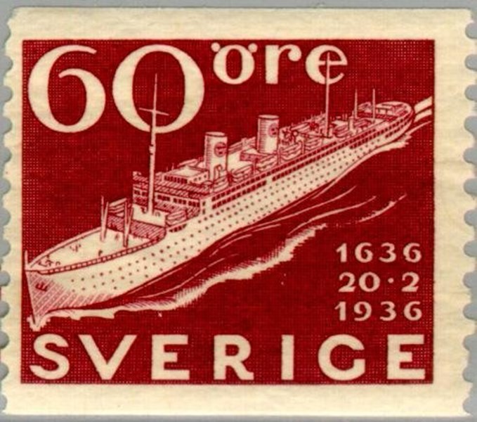 It depicts ten stamps of which the 60 ore shows the KUNGSHOLM in another colour and issued on 07 October 1972.