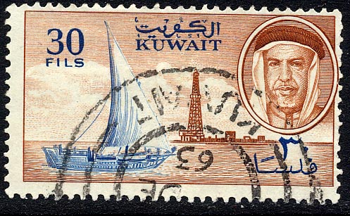 The 30 f. stamp shows a local dhow, a bum (or boom) but which may have an error in its design on the stamp, for on the starboard it carries a ship's boat, something which dhows never carried. It is unique in that it is a single-master whereas the typical craft is a two-master.