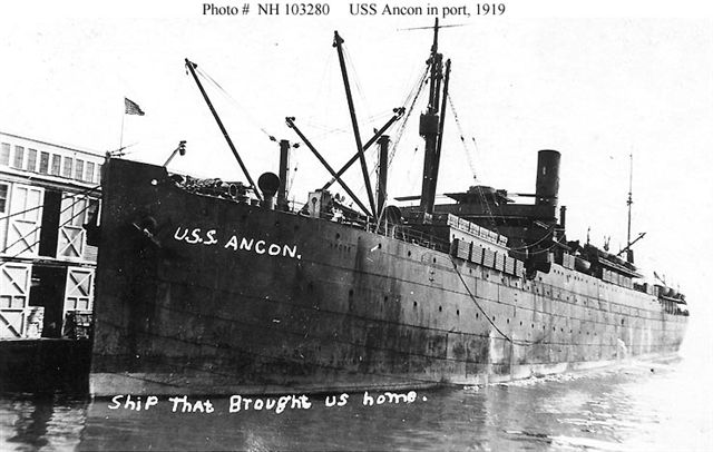 16 November 1918 required by the American Navy and fitted out as a troop transport USS ANCON (ID-1467) Armed with 3 – 6pdr. guns. Crew 261.