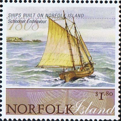 58 tons. 53 feet 6 inches in length by a beam of 17 feet four inches, and a depth of 10 feet. The schooner Endeavour was built in 1808 and made her maiden voyage to Sydney. After one voyage back to Norfolk Island, the schooner was sold in 1809 to Sydney trader, Isaac Nichols. The schooner traded along the New South Wales coast and in the Pacific to Otaheite. The schooner was taken by pirates in 1816 and plundered in the Marquesas. Rebuilt in 1921 in Sydney, she was later bought by King Tamatoa of Raiatea who used it for trading as well as missionary service. Sold in 1925 to George Robinson, a Hobart trader, the vessel was renamed Hunter, and fitted for sealing in the southern oceans. She was wrecked in June of 1829 on Kapiti Island.