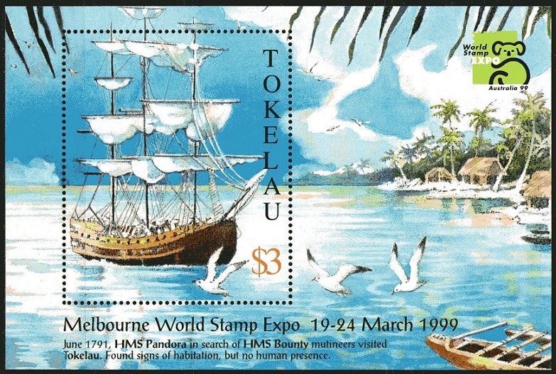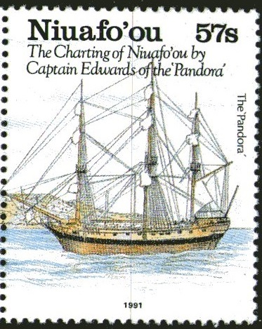 On August 8th 1966, Fiji issued three stamps commemorating the 175th anniversary of the discovery of Rotuma by Capt. Edward Edwards, R.N., in H.M.S. Pandora. In August 1790, the Pandora was commissioned by the Admiralty to search for mutineers from the Bounty. His orders were: "You are to keep the mutineers as closely confined as may preclude all possibility of their escaping, having however proper regard to the preservation of their lives, that they may be brought home to undergo the punishment due to their demerits".
