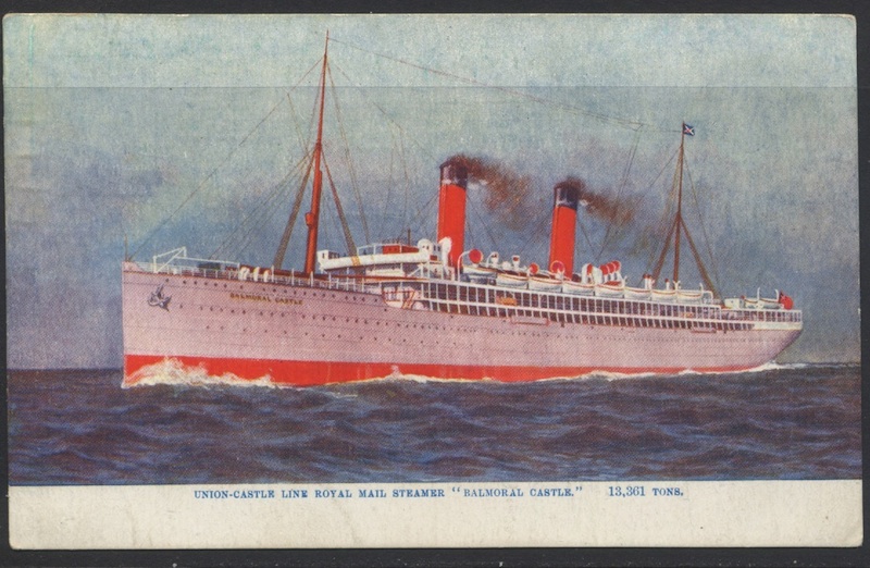 BALMORAL CASTLE. Passenger. Built by Fairfield SB & Eng. Co. Ltd. on the Clyde for Union Castle Mail Steamship Co Ltd. Launched 13 Nov 1909. Completed Feb 1910 L570' (173.74m) B64'6" (19.61m) Dr31'5" Dp38'9" (11.81m) 13,363Gt 7,512Nt .