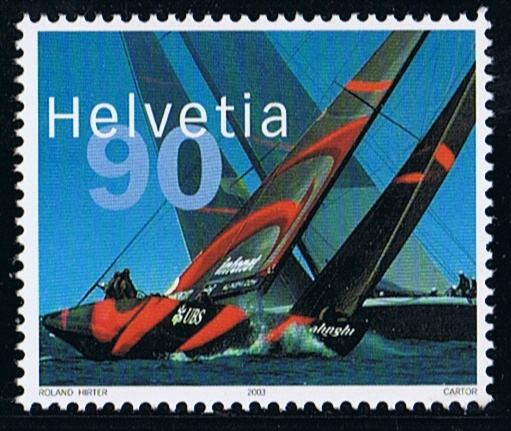 Swiss Post is bringing out a special stamp to mark the triumph of the Swiss Alinghi sailing team in the 2003 America’s Cup in New Zealand, honoring its masterly sporting and technical achievement in the world’s most prestigious sailing race by issuing a so-called event stamp with a face value of 90 centimes.