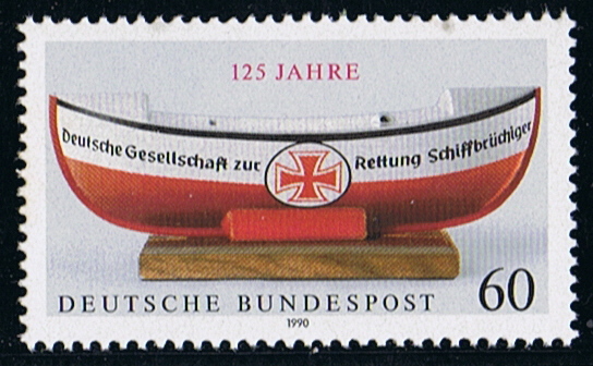 Germany issued a 60pf stamp on 03 May 1990 to commemorate the 125th anniversary of the German Life Boat Institution. The stamp design shows a collection box in the shape of a lifeboat.