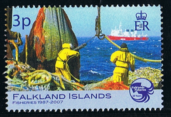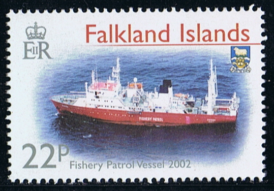 Falkland Islands 2002 22p sg?, scott? 2007 3p sg?, Scott? (the vessel in the foreground is the stern trawler HOLBERG.)