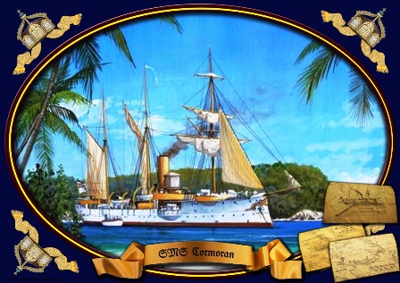 Early 1899 the COMORANT was ordered to proceed to Samoa, during the voyage to Samoa she ran in the night of 23/24 March on a reef on the westpoint of New-Pommern, (German New Guinea), by shifting the heavy guns to the stern, she was towed of the reef by the NDL steamer STETTIN on 29 March 1899.