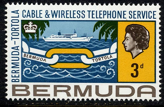 On September 14th 1967, the Post Office of Bermuda and the Virgin Islands both issued commemorative sets of stamps on the completion of the Bermuda-Tortola telephone link, a recent addition to the expanding services of Cable and Wireless Ltd. The length of the marine telephone cable linking the islands is 900 miles.