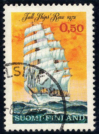 Finland is the first country to issue a commemorative stamp for the Tall Ship's Race 1972. The 50p stamp depicts the Finnish training-ship Suomen Joutsen (exOldenburg, ex-Laennec); the Finnish name means "Finnish Swan". She is a steel ship of 2,299 tons gross, 2,011 net, built by Chant. et Atel. de St. Nazaire, at St. Nazaire, and owned by Soc. Anon. des Armateurs Nantais. The Laennec became the German Oldenburg before coming under the-Finnish-flag. School-ships naturally have large crews, and thus some of the French-built ships with long poops and fo'c's'le heads (which attracted a higher government bounty, because it was paid on gross tonnage), were converted to sea training ships to good purpose.