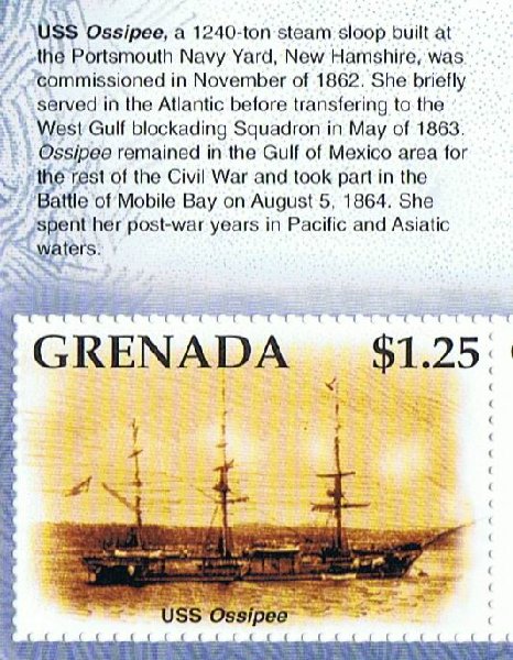 16 November 1861 launched as the USS OSSIPEE, sponsored by Mrs. McFarland, wife of the editor of the Concord Statesman, named after the Ossipee River in New Hampshire and south-western Maine flowing from Ossipee Lake and emptying into Saco River.