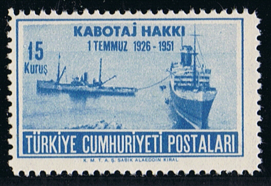 Turkey 1951 15k sg1457, scott1043, (the other vessel is the passenger vessel PROVIDENCE.)