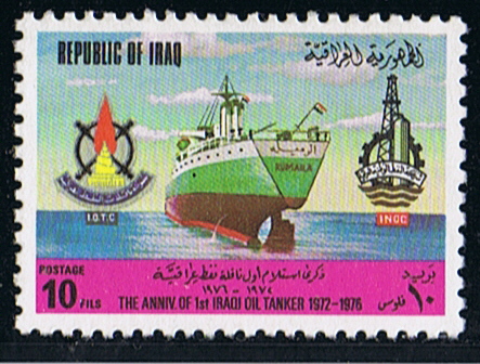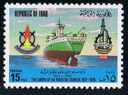 The stamps commemorate the 4th anniversary of the launching of RUMAILA, Iraq’s first oil tanker.