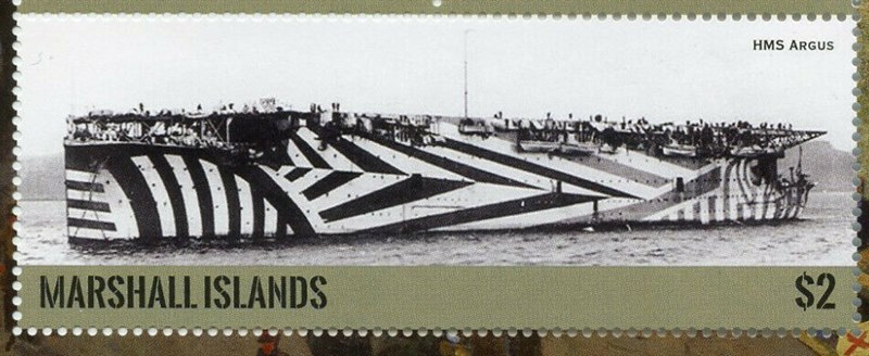 HMS ARGUS was a British aircraft carrier from 1918 until 1944. She was the world's first example of what is now the standard pattern of aircraft carrier, with a "flush deck" enabling wheeled aircraft to take-off and land. ARGUS had the nickname "Ditty Box" due to its similarity to the article of a sailor's kit.