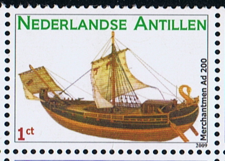 The Roman merchantmen depict on this stamp, the design is made after contemporary reliefs found in Italy and the Syrian coast.