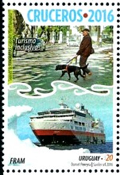 The Belgian Post Office has issued another miniature sheet in the build up to Antverpia 2010. The scene, again, shows the Antwerp quayside. There are three ships to be seen. Two are small white hulled excursion vessels, probably from the Flandria fleet. The third vessel, on the right hand side of the quay, is the Norwegian cruise ship FRAM from the Hurtigruten fleet.
