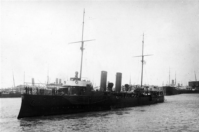 Armament: in 1914: 2 – 4.7 inch (Skoda), 4 – 12pdrs., 6 – 1pdr. (Vickers), 2 – 18 inch torpedo tubes.