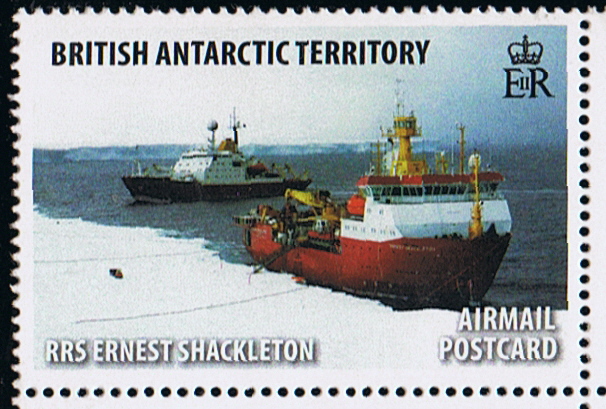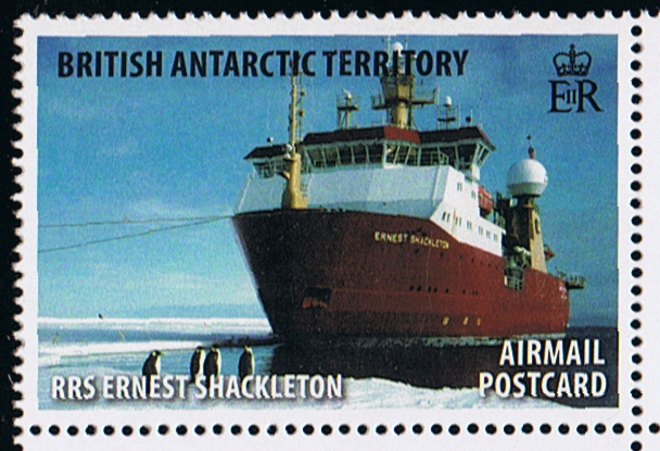 The 5p stamp features the BAS vessel the RRS ERNEST SHACKLETON which was used around the northern area for Phase Two of the project. The ship brought with it three helicopters, 200 tonnes of bait, 700 drums of helicopter fuel, 8 tonnes of food and three 20 foot container-loads of equipment. The helicopters flew the supplies from the ship to depots at 14 different sites along South Georgia’s coastline before the team disembarked in late February 2013.