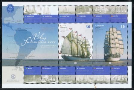 Argentine issued in 2010 a MS with two $6 dollar stamps for the “Tall Ship race” in South America in 2010.