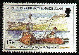 South Georgia and South Sandwich Islands 1993 15p sg?, scott166. 1993 63p sg?, scott168. 1999 17p sg284, scott? 2010 70p sg?, sg? (70p after she was hauled ashore in 2004)