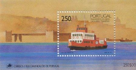 Portugal 1989 250e sgMS2142, scott ? (Stanley Gibbons Collect Ships on stamps list this vessel as CACILHEIRO.)