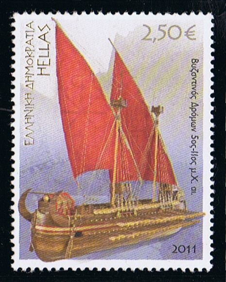 Libya 1993 50d sg2141 (exact the same image is depict in Bjorn Landstrom book Sailing Ships on page 52/53 and there given as a Byzantine dromon from the early 13th century.)