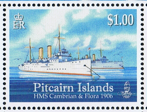 1906 She visited the Pitcairn Islands, and during her five day visit together with HMS FLORA, a torpedo party of the two ships blasted a boat passage in Bounty Bay.