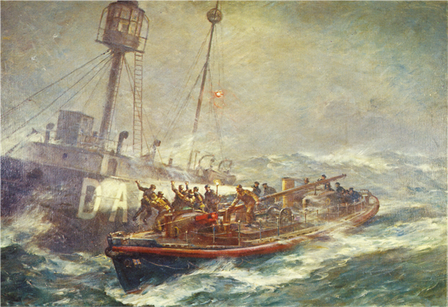 On 7 February 1936 a south-eastern gale, with rain and snow, developed into a hurricane. Mountainous waves were crashing over the pier and breakwater transforming the harbour into a seething cauldron, the spray was flying over the lantern of the 196 ft high lighthouse"stones, some a ton in weight, were being torn from the quay and flung about like sugar lumps". At 8am next morning an SOS was received: the LV COMET on station at Daunt rock, had broken from her moorings and was drifting dangerously. Without waiting for orders, in horrendous conditions, Coxswain Patrick ("Patsy") Sliney took MARY STANFORD to sea. COMET was not at Daunt rock, she was riding at anchor a quarter mile away. Other ships arrived, but dare not approach the COMET in such conditions. Lightships, are not 'lightweight', they are heavy: built for endurance. The COMET was being tossed around by the waves, were it to hit another ship, that ship would suffer serious damage.