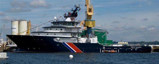 She is on a long time charter for the French government as a UT 515 Multi Purpose Salvage Tug/Coast Guard and Standby Safety vessel and can called up by the Maritime Prefect of Brest at any time.
