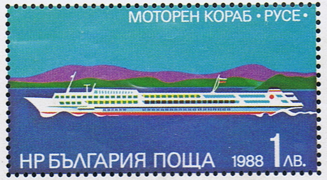 Bulgaria 1988 1lev sgMS3570, scott3380a (she is given by Log Book, Watercraft Philately and Navicula as RUSE but not any inland passenger river ship under that name has sailed.)