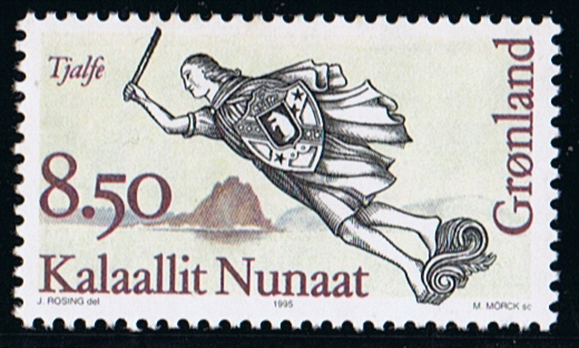 The stamp depicts only the figurehead of the TJALFE, now-a-days the figurehead is on display at the Marine Museum, Kronborg, Denmark.