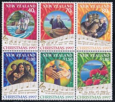The stamps tell the story of one of the first recorded Christmas services in New Zealand by Reverend Samuel Marsden at Rangihoura Bay in the Bay of Islands in 1814. Each stamp illustration is complimented by words from the New Zealand Christmas carol 'Te Harinui' which was written to commemorate the event.