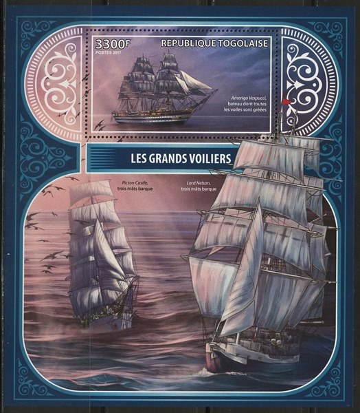 Togo 2017 3300F sgMS?, scott? in margin on stamp the ship on the right.