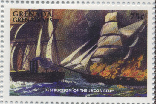 The merchant ship Jacob Bell was in the West Indies, bound from Foochow, China, to New York, with a valuable cargo when she was captured by CSS Florida on 12 February 1863. She was burned the next day.