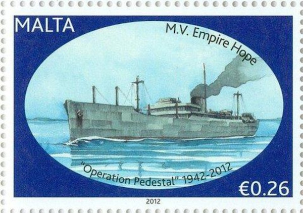 Built by Harland & Wolff Ltd, Belfast. Launched on 27 March 1941, Completed in October 1941, GRT: 12688, Dimensions: 521.4 ft x 63 ft, Engines: Oil, Twin Screw, 16 Knots, Refrigerated capacity: 495,000 cu ft. Operated under the management of Shaw, Savill & Albion Co Ltd. Made two voyages to Australia and New Zealand. Chosen for her speed to join Operation Pedestal. On 11 August 1942 she was bombed by Junkers Ju 88 and Heinkel He 111 while a member of Convoy WS 21. Her engines were put out of action by eighteen near misses, and then two direct hit set her on fire. She was carrying kerosene, coal and explosives. The crew abandoned ship and were rescued by HMS PENN. Just before midnight on 12 August, EMPIRE HOPE was torpedoed by Italian Submarine BRONZO. The wreck was deemed a hazard to shipping and was sunk by HMS BRAMHAM off Galeta Island.