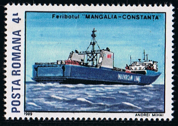By Navicula is given that the EFORIE is depict on this stamp but I believe the MANGALIA her sister is depict she was built first and completed in1988, while the EFORIE was completed in 1991 after the stamp was issued in 1989.