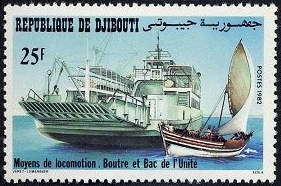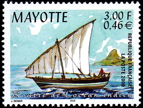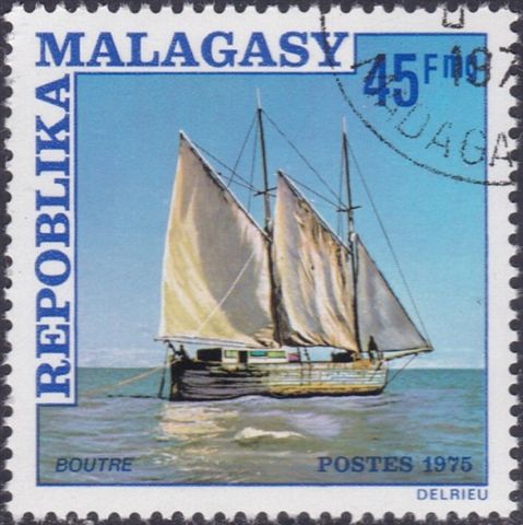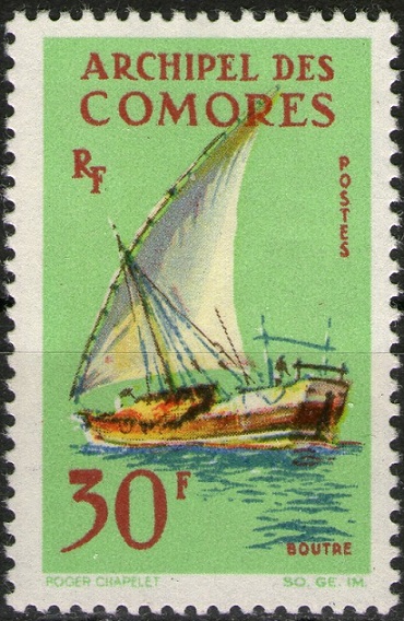 Dao of Comoros Islands also called "Boutri." The stamp 30f depicted decked "Boutri"-another name-"Kotia."