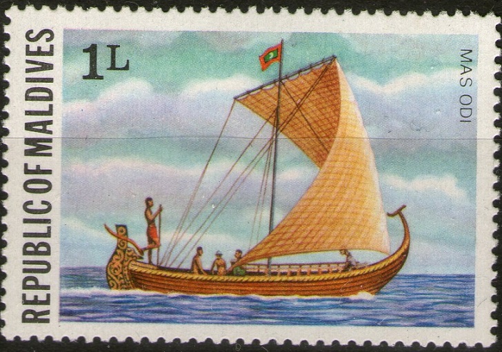 A boat that uses poles and lines for tuna fishing for the preparation of dried tuna (mas) in the Lakshadweep (Laccadive) Islands and Minicoy off the mainland coast. Carvel-planked of coconut or local laurel, fastened with copper nails. Sharp bow; high, recurved stem; stern low and full. The larger boats have a platform aft on which the crew and helmsman stand; platform rounded on the sides and extends out beyond the hull. A mast crutch, ca. 1.25-1.5m tall, is set into the platform; also used to support the helmsman. Nine compartments, 4 of which have holes and serve as wet wells for the bait. Rudder has a reverse "S" shape; short, S-shaped tiller. Those with one mast set a tall, narrow, square sail of matting for¬ward of the mast and a boomless gaff sail aft. On the 2-masted boats, the after mast is stepped amidships and the foremast is about midway between the after mast and the bow; after mast is shorter. Also rowed using 7-9 oars per side; shaft ca. 3.5-4m long, blade ca. 30cm long. Reported lengths 8-12.5m; e.g., length 12.5m, beam 3m; shallow draft.