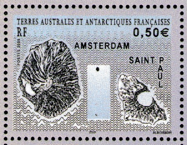 French Ant.Territ.publish MS with the stamp of the discovery 2 islands in the Indian Ocean: Amsterdam and Sao Paulo.