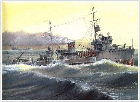 During the four years service during the war she sailed 47.000 miles through mine infested waters, escorted 26 warships and 264 transport ships. Laid mines