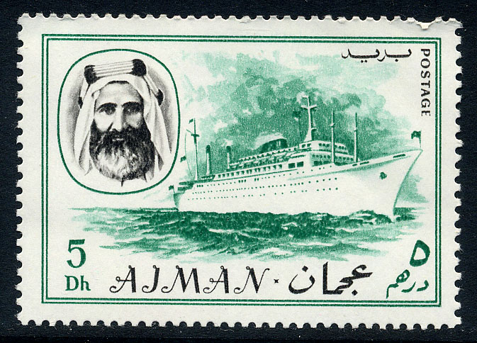 After grounding on 10 June 1990 she was towed to New York Shipyard, Erie Basin by Morgan tugs and spent most of the Summer there being repaired. Returned to service 1 September as ENCHANTED ISLE her stack was repainted blue with the name 'Commodore' in raised yellow letters, reflecting the merger of Bermuda Star Line with Commodore Cruise Line in Aug 1990. As ENCHANTED ISLE was refited by Vancouver Dry Dock Co. Ltd. in May 1992. Scheduled to be renamed COMMODORE HOTEL for Baltic Lines, positioned as floating hotel on the Neva River at St Petersburg, Russia in June 1993 - Ajman 1967. 5dh. SG139. 10r. SG148. (A Palmhof. WP Jan 1993. Nov 94. TB 1963)
