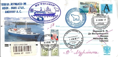 From my Russian contact Mr. Sitnikov I got the following Russian envelope images of the POLARIS and a photo of the ship under Russian flag..