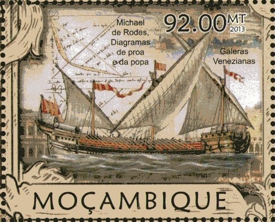 The galeassa was usually equipped with 3 masts and square sails (the largest had 4 trees), forecastle, poop deck (This model had already been developed in the carrack galleon and later in the Mediterranean ) and two bridges. It could take from 32 to 46 banks of oarsmen ( rowing scalaccio ). They had between 100-250 soldiers and up to 70 additional sailors. A length of about 50 m and 8 m wide. The galeassa was developed on the basis of large merchant galleys, giving them a gunship Castle semicircular bow with up to 9 heavy guns covering a wide angle. Also had a high rail where you could install more parts and even had pieces of artillery in the stern , they could be around 35-50 cañones.Since galleys were converted for military use must be tended high and wide (rather than read ) rode a large number of guns , which were placed for the most part along the sides scattered here and there among the oars and in the forecastle .The model of galeassa was developed by the Republic of Venice, which was then able to get ships that could compete with the ordinary galleys . We were built relatively few , but they were nonetheless very important . Their first appearance was in the battle of Lepanto on October 7, 1571 during which they were deployed six Venetian galleаss as a vanguard under the command of Francis Duodo administrator . Their firepower and being high on board were instrumental in bringing victory to the Christian fleet . The galleys were also appreciated by the great Venetian admiral Francesco Morosini , so much so that one of these boats he was chosen as the flagship of the fleet . The shallow waters , the rugged coastline , mild climate and weakly variable winds in the Mediterranean allowed the galleys and galleass to survive until the early eighteenth century.