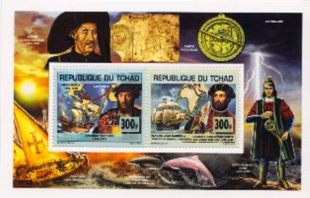 Chad 2013 300f in margin of stamp sg?, scott? (There it is given as a carrack, and the form is different of the hull of the ship as the other two stamps)