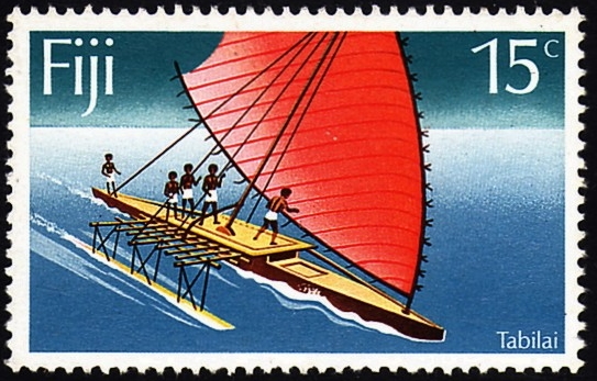 Fiji 1977 15c sg546, scott381 (Navicula gives, the canoe depict in the coat of arms of Fiji and showed on many stamps depict the “tabilai”.)